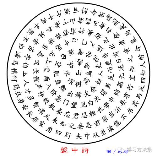 传说苏伯玉曾官游蜀地。他一到四川,就被奇丽的山川景致吸引住了,整天与朋友们流连于山水之间,再加上政务繁忙,迎进送出,竟渐渐把留在长安家中的妻子淡忘了。苏伯玉的妻子,别看她名不见经传,可是一位兰心慧性的多情才女,丈夫使,一去数载,迟迟不归,连书信也不见一封。妻子看见人家夫唱妇随,其乐融融,心里又是思念,又是怨恨。她决心把自己的一片思念之情诉说给丈夫,让“负心”的人能深知妻子的痴情。于是,她就把自己的心意全部“盛”在一只盘子里,寄给远方的丈夫。《回文类聚》上称它为“盘中诗”。